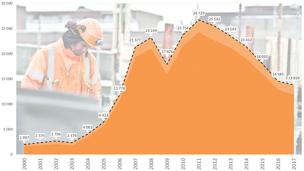 Arbeidsinnvandrere faller ut av arbeidslivet: